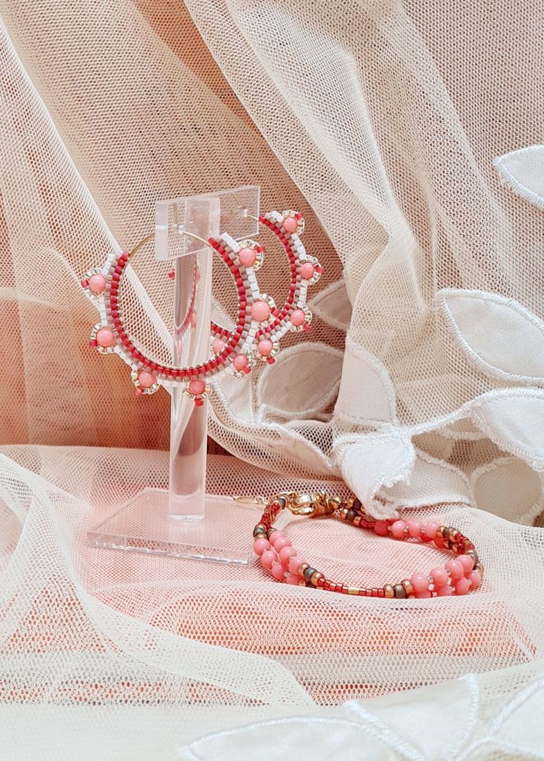 Les boucles d’oreilles créoles Julie en corail sont réalisées à la main dans mon atelier lorrain.